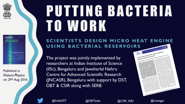 The research was funded by the Department of Science and Technology (DST, India), the Department of Biotechnology (DBT, India) and the Council of Scientific and Industrial Research (CSIR) and appeared in Nature Physics as an article titled “A Micrometer-sized Heat Engine Operating Between Bacterial Reservoirs”.