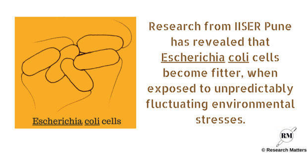 Escherichia coli, a poster boy for microbiology research and the notorious bacteria that causes stomach infections, might soon be an unusual source of inspiration for us, humans, for learning how to handle stress! A new study by scientists at the Indian Institute of Science, Education and Research (IISER) Pune, has revealed, for the first time, that E. coli cells become more sturdy and fit when exposed to unpredictably fluctuating environments containing high levels of salts or chemicals, or having extreme pH values. Led by Prof. Sutirth Dey, the study aims to investigate the evolution of fitness and the costs incurred by the bacteria in this process.