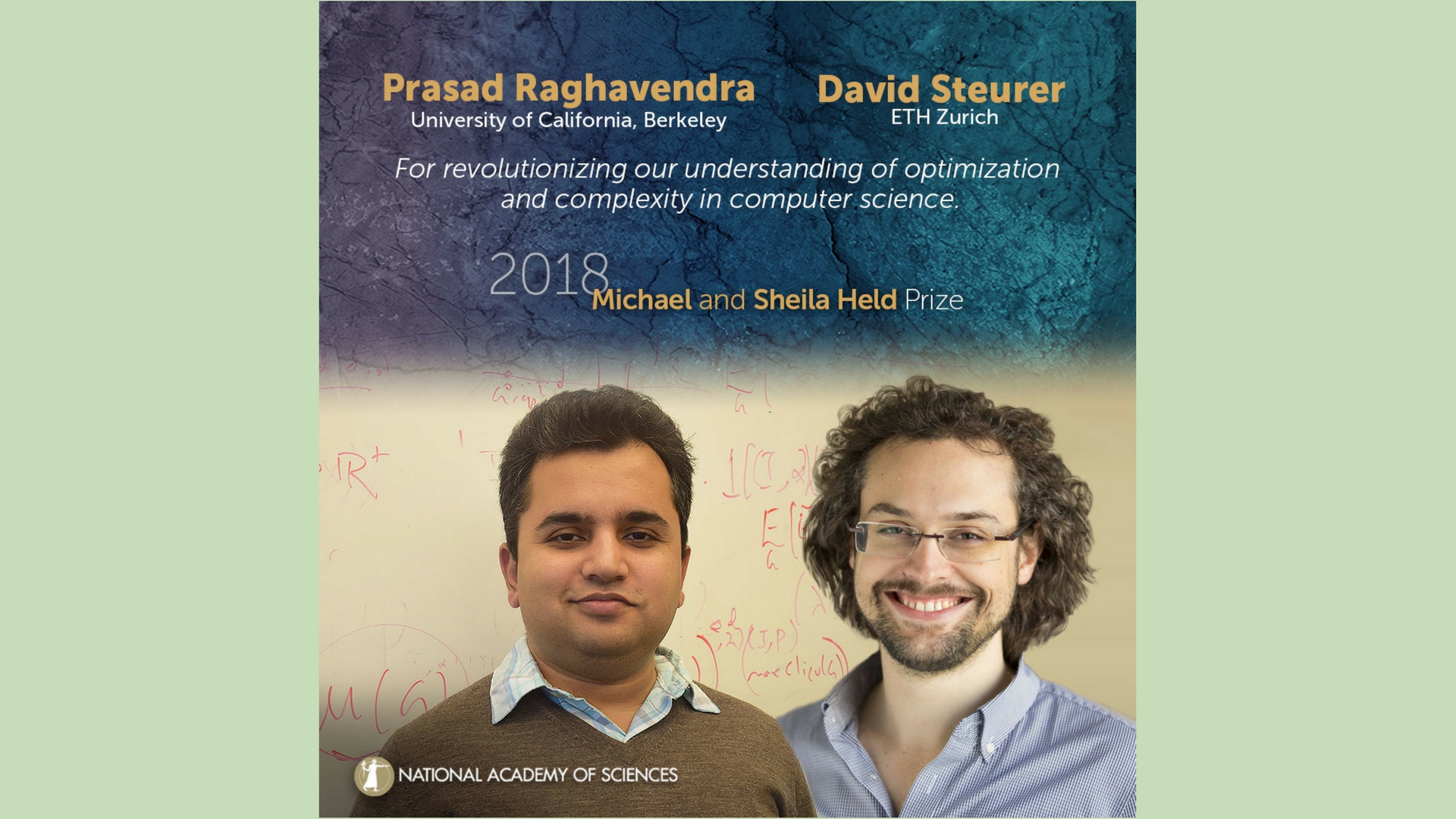 Prasad Raghavendra, Associate Professor of electrical engineering and computer science at the University of California, Berkeley, and David Steurer, professor of theoretical computer science at ETH Zurich have been chosen as the winners of the first Michael and Sheila Held prize. They were chosen “for a body of work which revolutionizes our understanding of optimization and complexity in computer science” announces a press release from the academy.