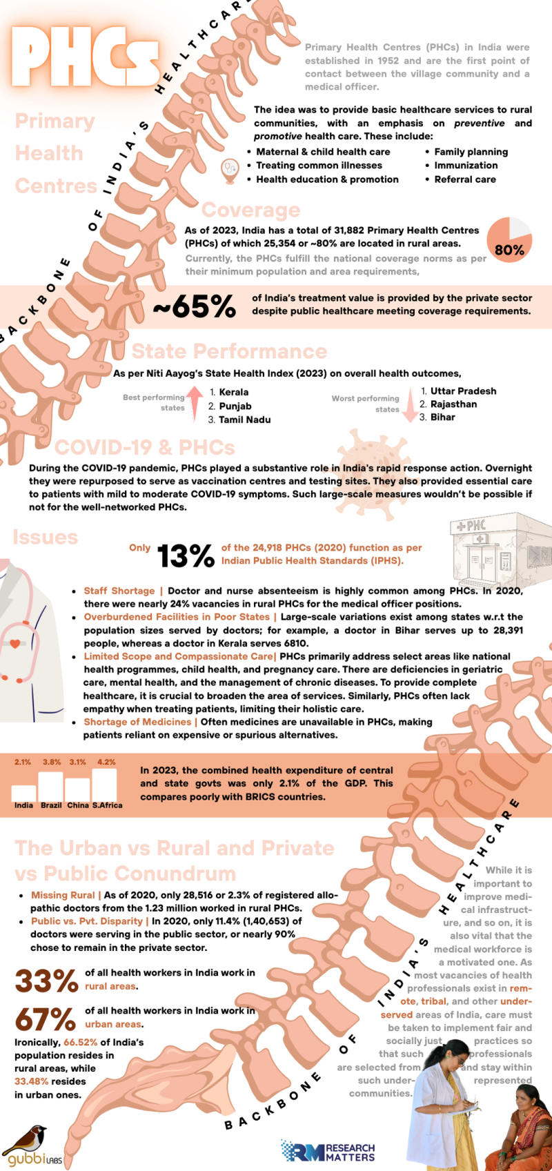 On this World Health Day, let's take a look at the backbone of India's healthcare - Its PHCs. Primary Health Centres (PHCs) in India were established in 1952 and are the first contact point between the village community and the medical officer. During Covid-19, PHCs played a crucial role in ensuring vaccine and medical coverage reached the remotest regions in the country. Check out the infographic to learn more about India's first line of defence in healthcare.