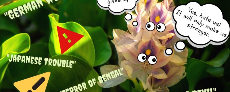 Water Hyacinth (Eichhornia crassipes) is a free-floating perennial aquatic plant, native to the Amazon basin in South America. The beautiful, large, purple flowers make it a favourite ornamental plant. However, its beauty is only surface deep, since it has a bad reputation of being one of the worst aquatic weeds in the world.