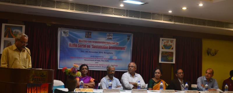 Vigyan Prasar is preparing to start a new series on sustainable development, to be aired on the radio and supported by All India Radio (AIR) and Karnataka State Council for Science and Technology (KSCST). Various researchers, conservationists and AIR broadcasters from various states met on November 3rd, 2016, in Bangalore for a two-day workshop to discuss the format and the content of the programme. Several luminaries attended the inauguration of the workshop including Dr. R. Gopichandran, Director of Vigyan Prasar, Dr. B. K Tyagi, Scientist-E at Vigyan Prasar, Mrs. B.V. Padma, Station Director of AIR, Bengaluru, Prof. H N Chanakya, the chief research scientist at the Centre for Sustainable Technologies, IISc and Prof. S. Subramanian, Secretary of KSCST.