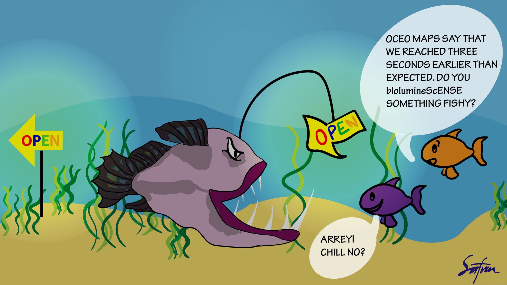 ಮೀನುಗಳಿಗೆ, ಅದರ ಸುತ್ತಮುತ್ತಲಿನ ಪ್ರದೇಶಗಳಲ್ಲಿ ಬೆರೆಯಲು ಸಹಾಯ ಮಾಡುವುದರ ಜೊತೆಗೆ, ಈ ಮರೆಮಾಚುವಿಕೆಯು ಆಮಿಷವಾಗಿಯೂ ಕಾರ್ಯನಿರ್ವಹಿಸುತ್ತದೆ. ಕೆಲವು ಪ್ರಭೇದಗಳು ಪ್ರಕಾಶಮಾನವಾದ ಮಾದರಿಗಳನ್ನು ಹೊಂದಿದ್ದು, ಈ ಮಾದರಿಗಳು ಸಣ್ಣ ಮೀನುಗಳಂತೆಯೇ ಕಾಣುತ್ತವೆ. ಇದರಿಂದ ಮಾರುಹೋದ, ಒಂದು ಮೀನು ದಾಳಿ ಮಾಡಲು ಅವುಗಳನ್ನು  ಸಂಪರ್ಕಿಸಿದಾಗ, ಅವು ತಮ್ಮ ನೈಜ ಗಾತ್ರವನ್ನು ಬಹಿರಂಗಪಡಿಸುತ್ತವೆ,  ಮತ್ತು ಅದನ್ನು ಭಕ್ಷಿಸುತ್ತವೆ!