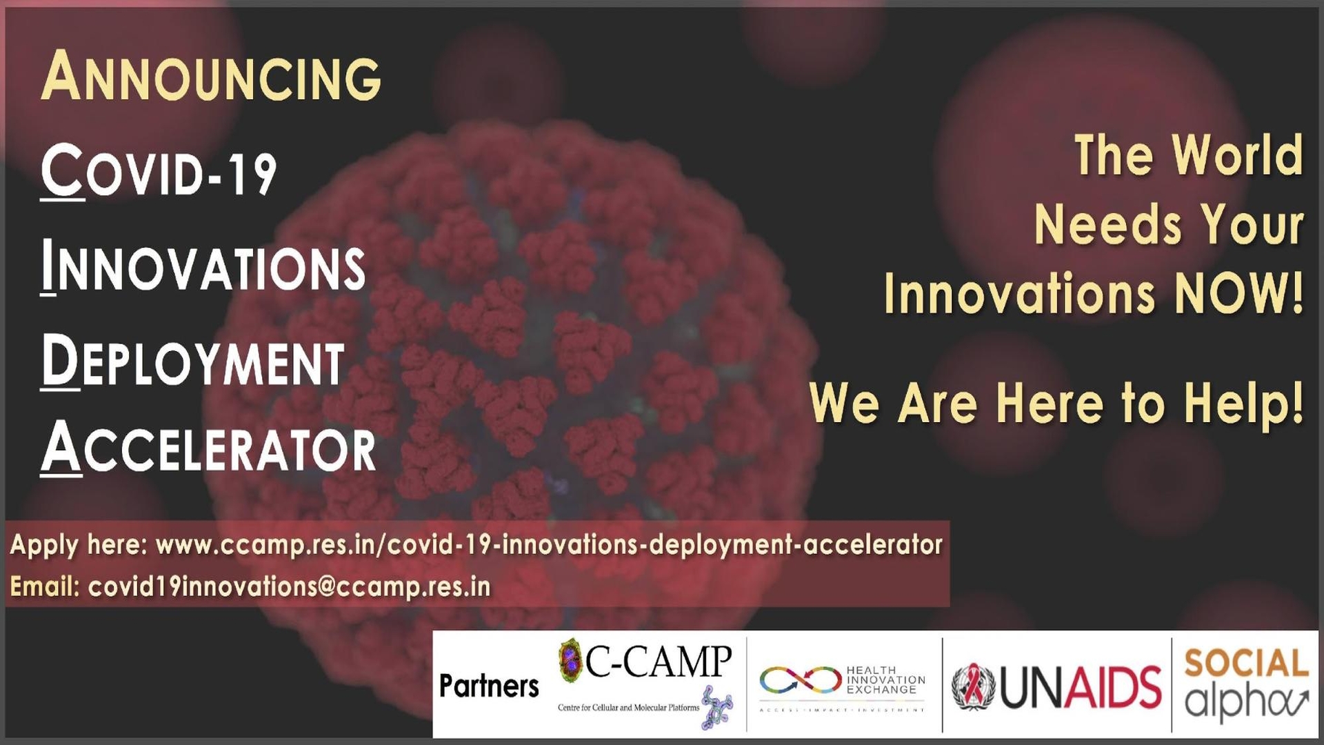 Application link - www.ccamp.res.in/covid-19-innovations-deployment-accelerator