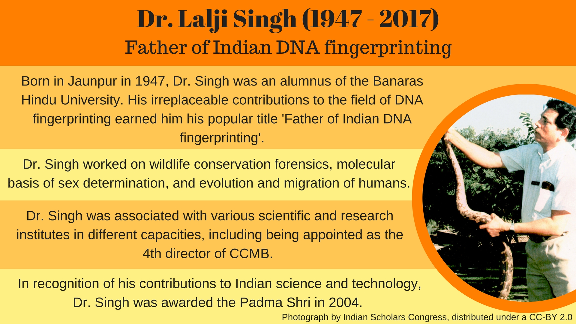 Lalji Singh’s work on the evolution of Banded kraits--a species of snake found in India and Southeast Asia--is considered to be the foundation for the development of DNA fingerprinting technology in the country. With time, the fingerprinting techniques evolved, and was used widely as forensic evidence in several civil and criminal cases. Lalji also established the Center for DNA Fingerprinting and Diagnostics (CDFD) in Hyderabad, to provide effective DNA fingerprinting for humans. His contributions to the field earned him the honor of being called the “father of DNA fingerprinting” in India. He was also awarded the Padma Shri for his contributions to Indian science and technology.