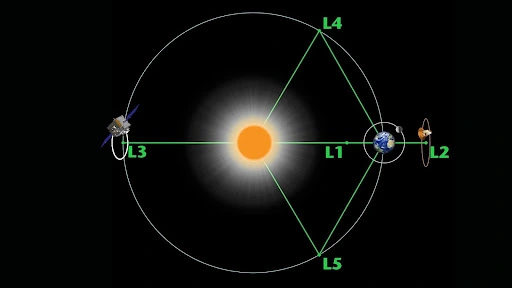 Once a satellite is launched into space, depending on its mission, it soon settles into an orbit around a body, like a planet or the moon and continues on its orbit. This is not a smooth ride however; the satellite receives numerous gravitational tugs to from other gravitational sources, which need to be corrected for to keep the satellite in the preferred orbit. There are however special points around objects, like the earth where a satellite in orbit can remain stable with relatively little corrections. These special spots are called Lagrange points, locations in space where the gravitational forces of two large celestial bodies (like the Sun and Earth) and the centripetal force of a smaller object (like a satellite) balance out. They're like gravitational parking spots where a spacecraft can hover with minimal energy. The Sun-Earth system has five Lagrange points - L1 to L5.