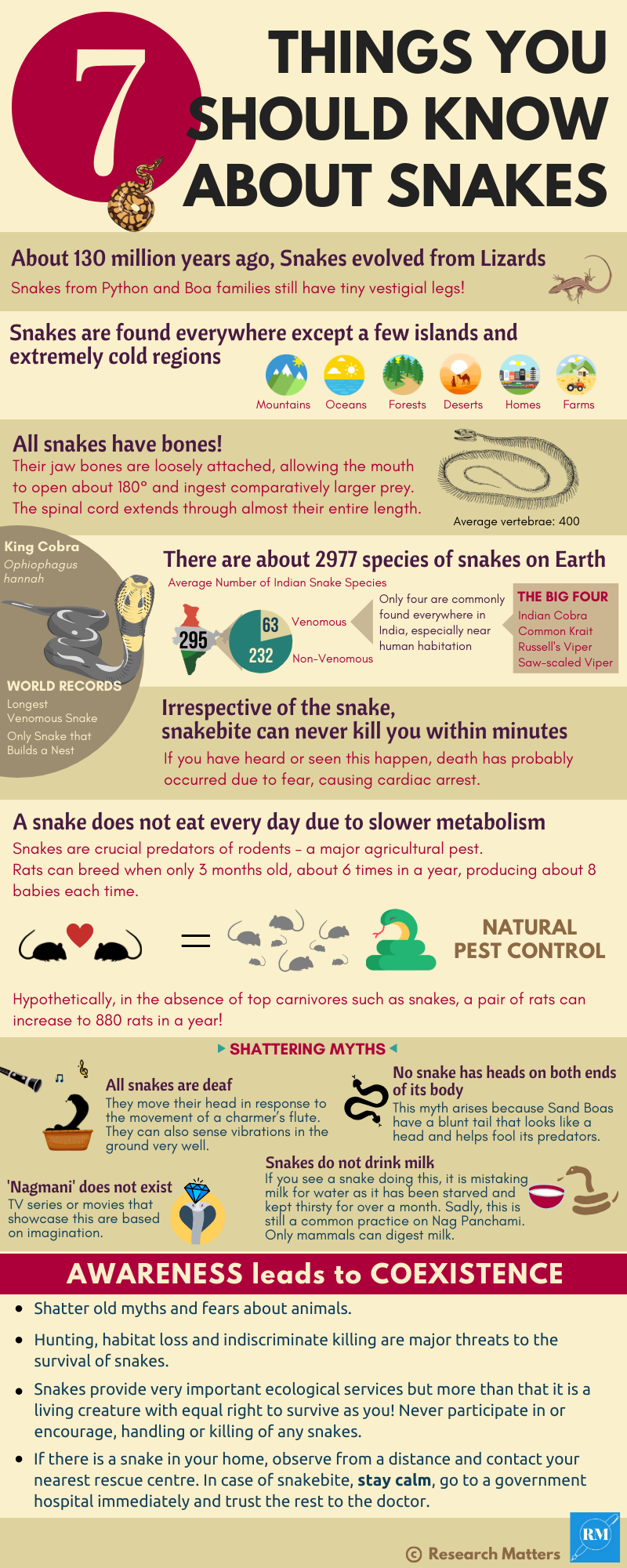 Most of the knowledge a common man has about reptiles is based on stories and hearsay. It is high time we find out authentic truths and coexist with the wildlife that often finds its way to our homes, farms and other urban spaces. Let us learn about one of the most fascinating reptiles, snakes and appreciate how the human race is indebted to them.