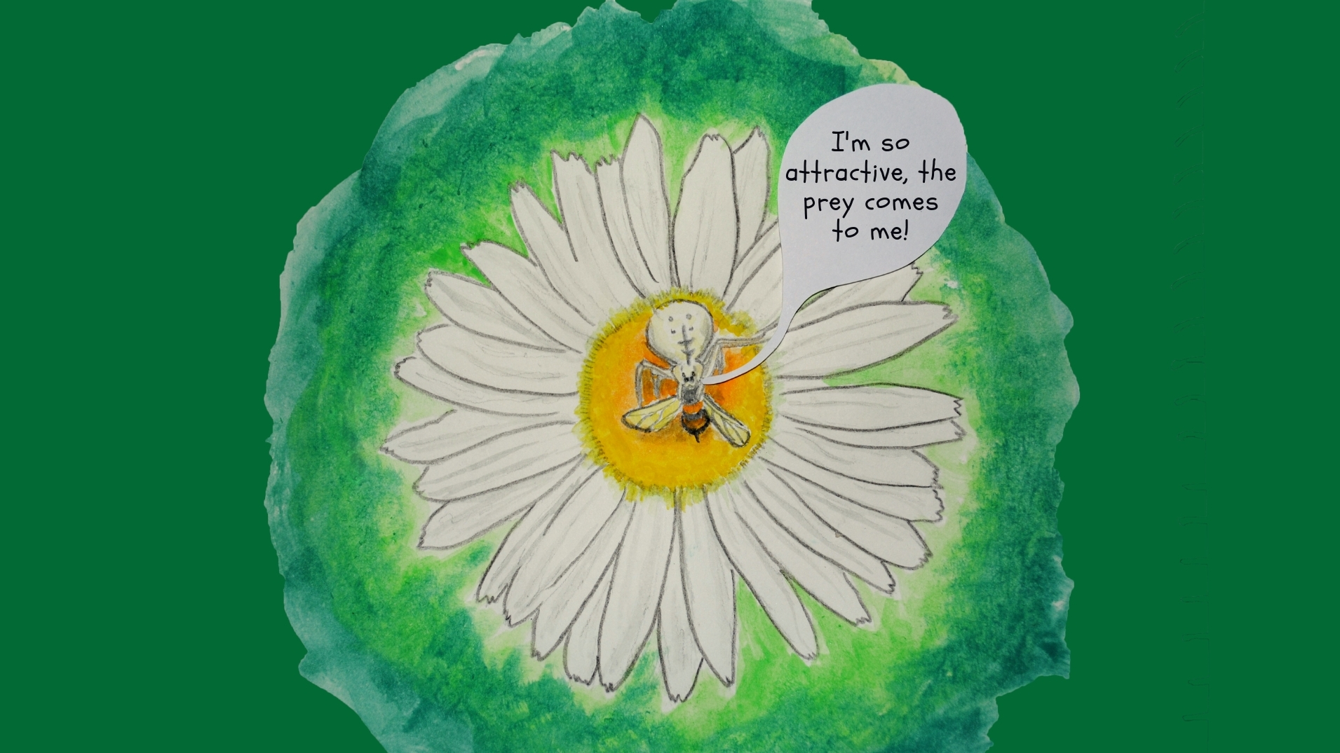 So, what role does camouflage play? Only more research will tell, but it is possibly because the crab spiders want to stay hidden from other eyes – those of their predators.