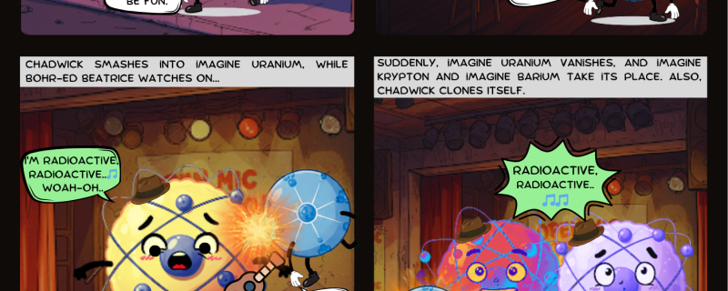 In an alternate dimension, sentient quantum particles and elements all hang out together, but things can get a little out of hand when a couple of neutrons meet a 'radioactive' uranium.