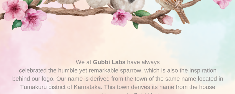 We at Gubbi Labs have always celebrated the humble yet remarkable sparrow, which is also the inspiration behind our logo. Our name is derived from the town of the same name located in Tumakuru district of Karnataka. This town derives its name from the house sparrow and is home to Gubbi Labs.