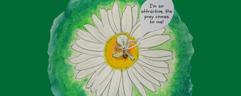 Crab spiders are a family of small, pretty spiders, some of which you could find in your own backyard or even on a potted plant. They are accomplished ambush hunters, making meals out of insects much larger than themselves – a crab spider half the size of your fingernail can easily grab a large butterfly. They are coloured to blend in remarkably with their surroundings, much like an octopus or a chameleon would.