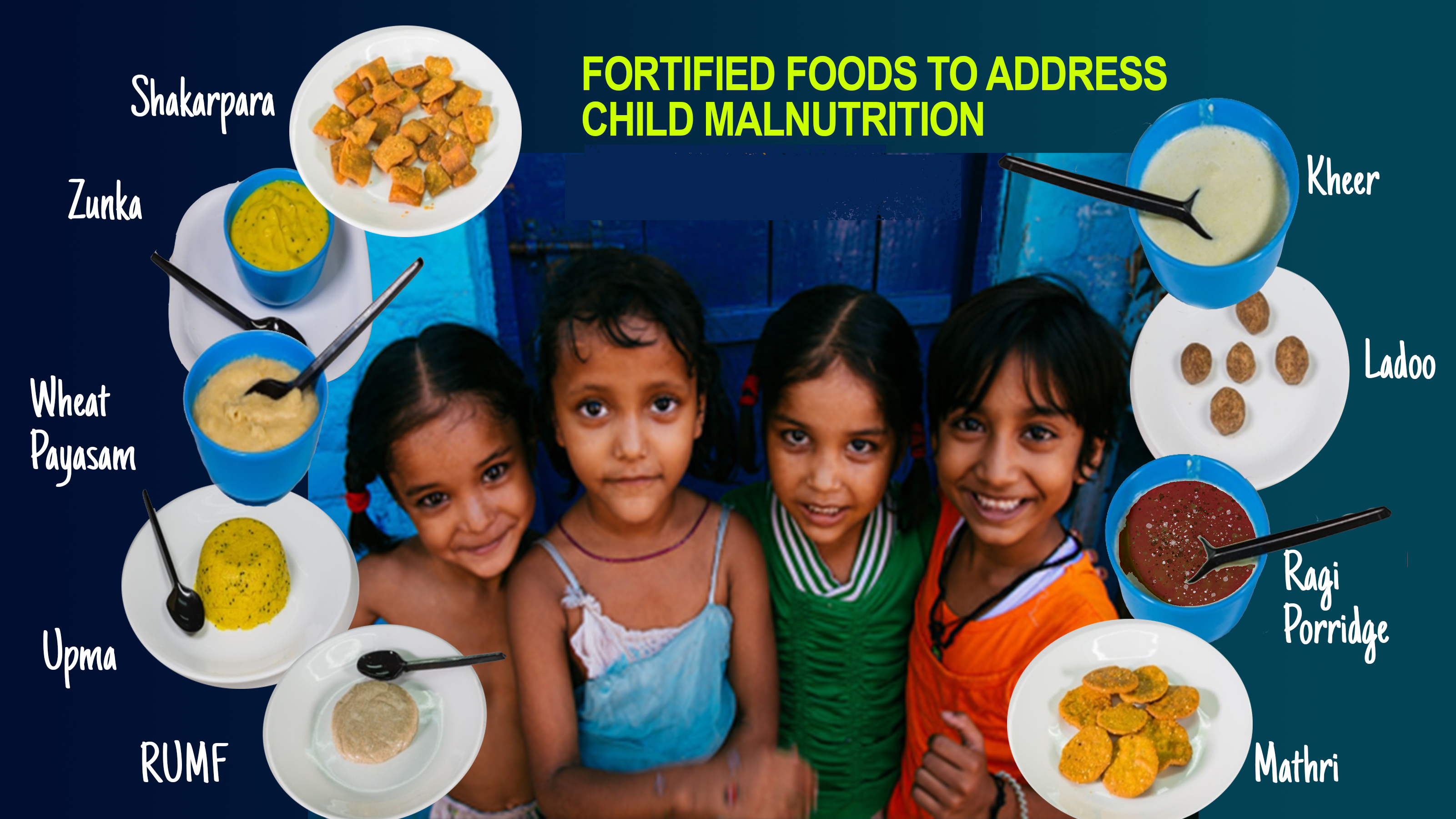 ஊட்டச்சத்து குறைபாட்டினைப் போக்குவதற்காக இந்திய அரசாங்கத்தின் பல திட்டங்கள் கிராமப்புறங்களில் உள்ள குழந்தைகளுக்கு முதன்மையாகப் பொருந்துகின்றன. ஆனால், இத்திட்டங்களால் அதிக மக்கள்தொகை கொண்ட நகர்ப்புறங்களில் உள்ள குடிசைவாசிகள் மற்றும் ஒதுக்கப்பட்ட சமூக மக்களின் குழந்தைகளுக்கு ஊட்டச்சத்து குறைபாட்டைச் சமாளிக்க முடிவதில்லை. நிதி ஆயோக் (இத்திட்டங்களுக்குப் பொறுப்பான அரசு நிறுவனம்) சமீபத்தில் வெளியிட்ட முன்னேற்ற அறிக்கையானது, 6 முதல் 36 மாதங்களுக்குட்பட்ட குழந்தைகளுக்கு ஊட்டச்சத்து உள்ளடக்கம் மற்றும் உணவு அமைப்பைத் திருத்த வேண்டிய அவசியம் குறித்த ஆலோசனைகளை அறிவுறுத்துகின்றது. மேலும், தற்போது வழங்கப்படும் ஊட்டச்சத்து மாற்று உணவுகள் சுவையற்றதாகவும், உண்பதற்கு சலிப்பானதாகவும் உள்ளன. மேலும் இவை ஊட்டச்சத்து குறைபாட்டினை சரிசெய்வதற்கு ஏதுவானதாக இல்லை.